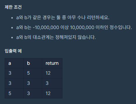 두 정수 사이의 합 / 파이썬, 프로그래머스 코딩테스트 연습 연습문제 본문