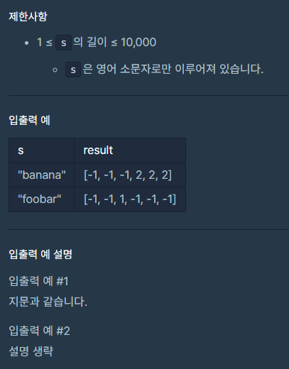 가장 가까운 같은 글자 / 프로그래머스, 파이썬 코딩테스트 연습 연습문제 본문