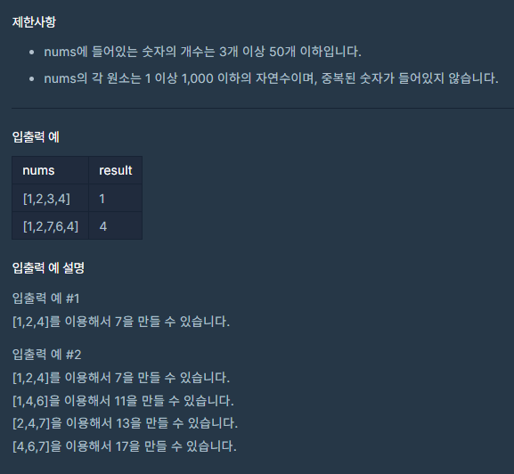 소수 만들기 / 프로그래머스, 파이썬 코딩테스트 연습 Summer/Winter Coding(~2018)