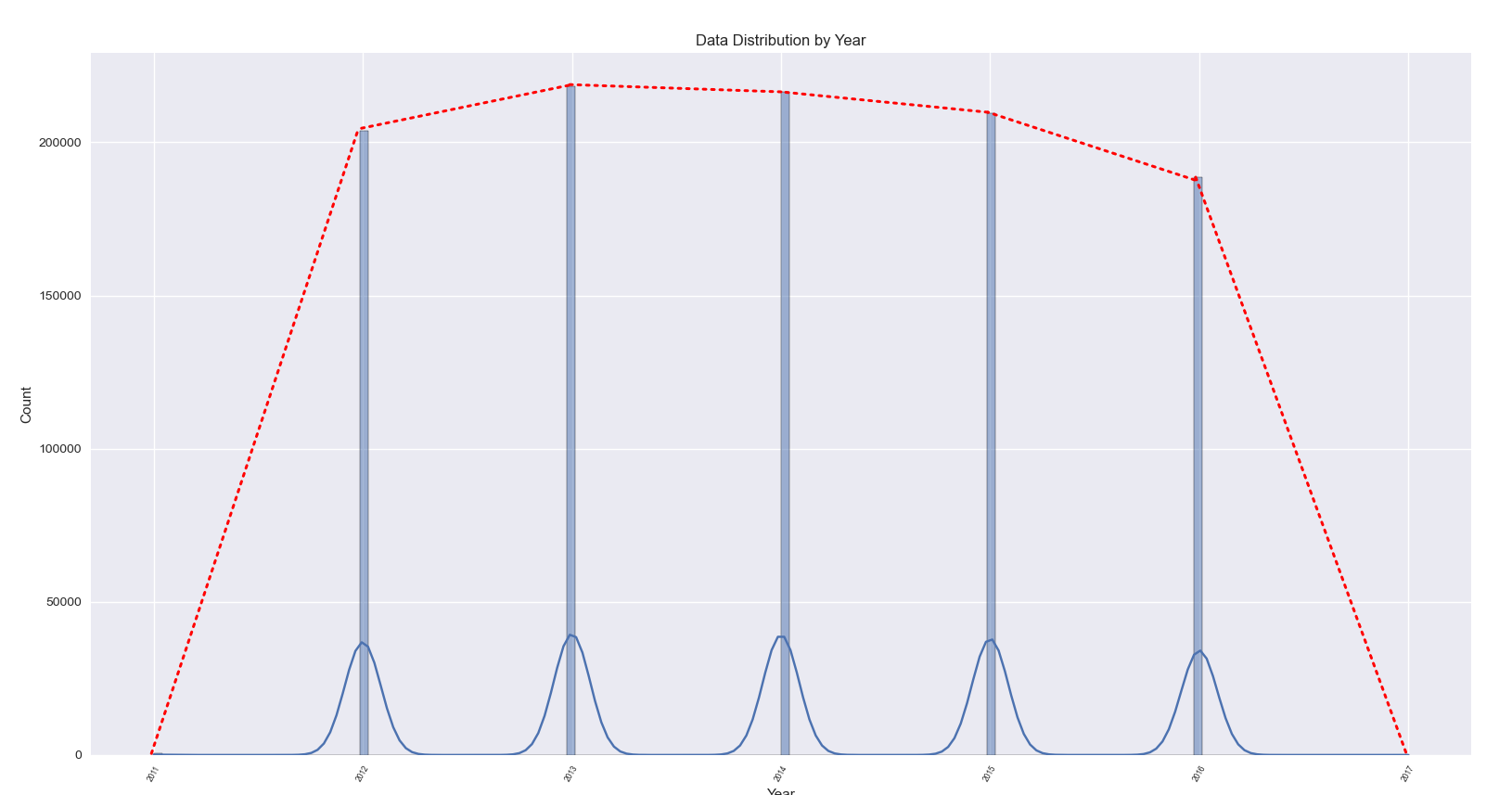 연도별 데이터 수 - 2011, 2017년 데이터가 월등히 부족시간데이터 범위 - 2017년 데이터는 2017/1/9까지 밖에없음