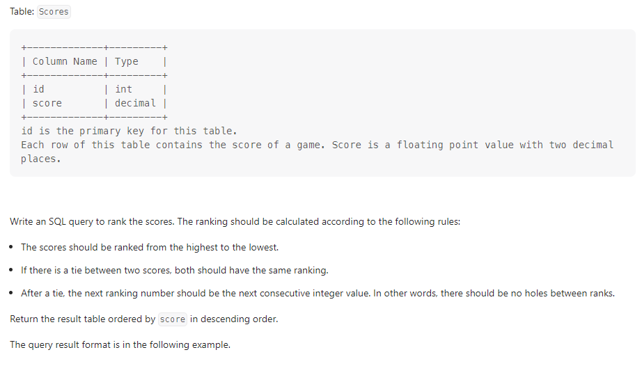 178. Rank Scores / LeetCode, SQL, MySQL 본문