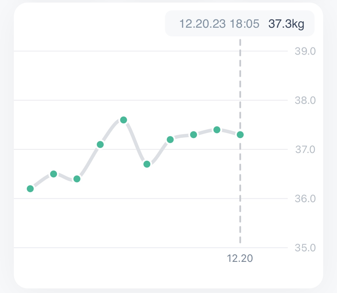 12월 말 근골격 무게: 37.3kg (+1.1kg)2023년 운동 월 평균 및 측정된 skeletal muscle mass (11.24~12.20)