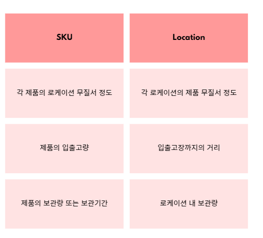 셋째, 분류를 마친 제품들을 각각 어느 로케이션에 보관할 것인가?