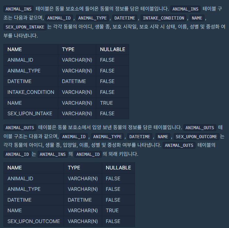 오랜 기간 보호한 동물(1) / 프로그래머스, SQL 코딩테스트 연습 JOIN 본문