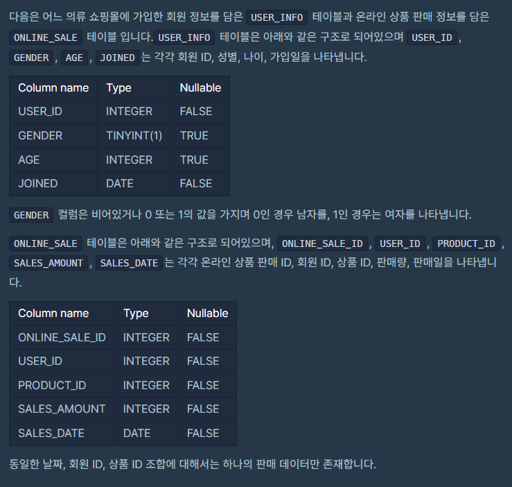 년, 월, 성별 별 상품 구매 회원 수 구하기 / 프로그래머스, SQL 코딩테스트 연습GROUP BY 본문