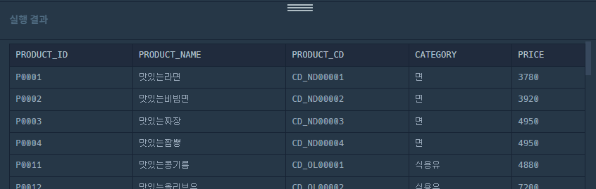 Food_product 테이블 조회