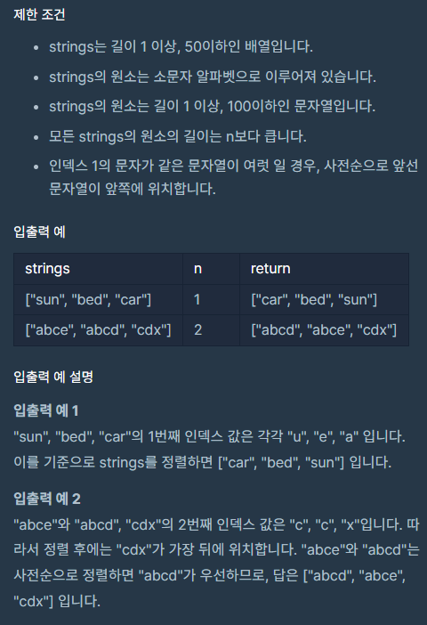 문자열 내 마음대로 정렬하기 / 프로그래머스, 파이썬 코딩테스트 연습 연습문제 본문